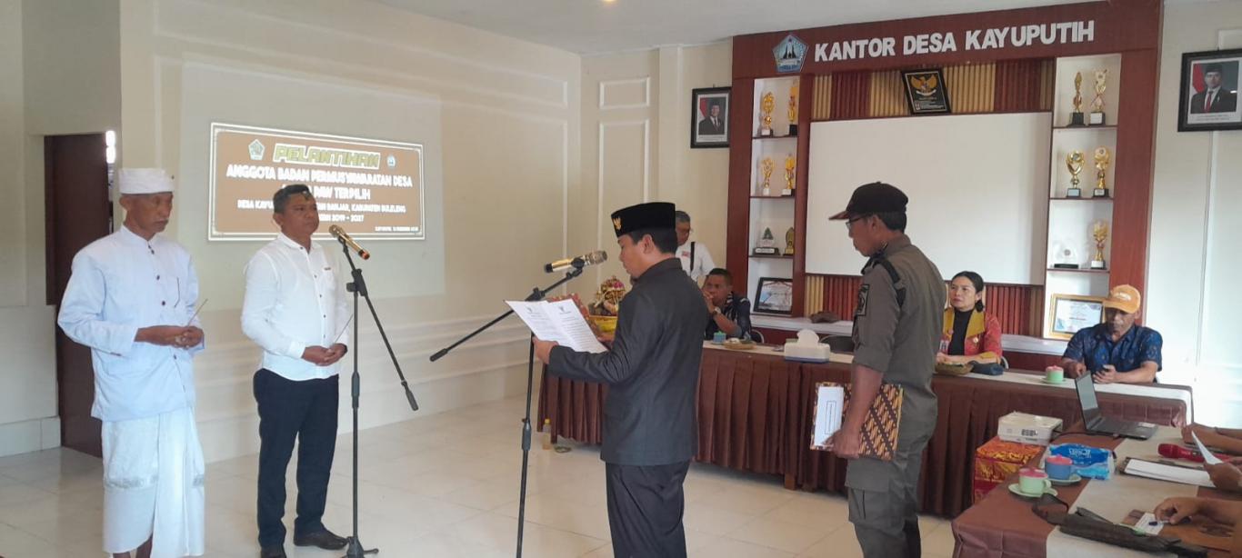 Jumat, 12 Desember 2025 Perbekel Kayuputih (KADEK DINA NURIANI) melakukan pelantikan anggota BPD PAW Terpilih yang dilantik langsung oleh Bapak Camat Banjar yang bertempat di ruang rapat kantor Desa Kayuputih, Kecamatan Banjar, Kabupaten Buleleng. Acara tersebut dihadiri oleh Bapak Camat Banjar beserta staf, kelian banjar dinas, Kelian Desa Adat Kayuputih, BPD kayuputih beserta anggota dan anggota BPD yang dilantik adapun susunan acara pelantikan tersebut dengan menyanyikan indonesia raya, pembacaan doa, sambutan pembukaan dari bapak camat banjar, sumpah janji anggota BPD yang baru, penyerahan SK BPD PAW