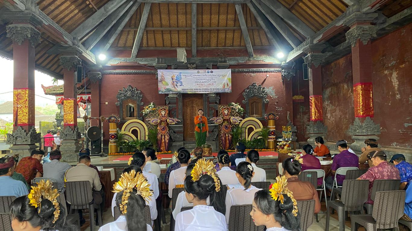Kamis, 26 Pebruari 2026 bertempat di wantilan Desa Kayuputih Pemerintah Desa Kayuputih bersinergi dengan Desa Adat Kayuputih menyelenggarakan kegiatan Bulan Bahasa Bali VIII Tahun 2026 dengan tema ATMA KERTHI - UDIANA PURNANING JIWA. kegiatan yang akan dilaksanakan yaitu lomba Nyurat Aksara Bali dan Lomba Ngwacen Bahasa Bali adapun sambutan-sambutan dari bapak Kelian Adat Kayuputih , ibu Perbekel Desa Kayuputih , MDA Kecamatan Banjar kegiatan dimulai dari pukul 8.00 dengan tarian sambutan yaitu tari Panjembrahma dilanjutkan dengan lomba-lomba dan di akhiri dengan penyerahan hadiah