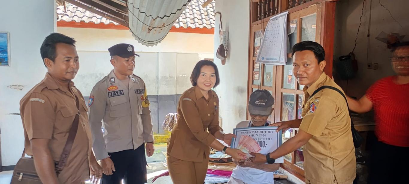 Senin, 05 April 2026 Perbekel Kayuputih ( Kadek Dina Nuriani ) kembali Menyalurkan Bantuan Langsung Tunai Dana Desa tahun anggaran 2026 untuk 7 Orang penerima bantuan Perbekel bersama Staf Kasi.Sosbud Kecamatan Banjar, Bhabinkamtibmas Desa Kayuputih, Pendamping PKH dan Kelian Banjar Dinas mendatangi rumah-rumah warga yang mendapatkan bantuan untuk penyerahan BLT-DD Tahun anggaran 2026 untuk bulan Januari, Pebruari dan Maret.
